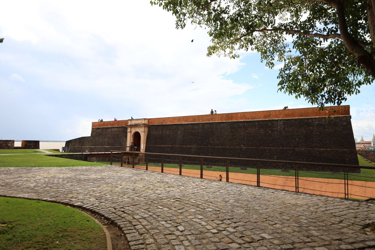 Forte do castelo: Construído em 1878 no mesmo local onde os portugueses construíram o Forte do Presépio em 1616, marco da fundação da cidade. Possui uma bela vista para a Baía do Guajará. Os canhões ainda estão sobre seus trilhos de ajuste de mira, fixados no piso de pedra. Foto: Rodrigo Pinheiro / Ag. Pará